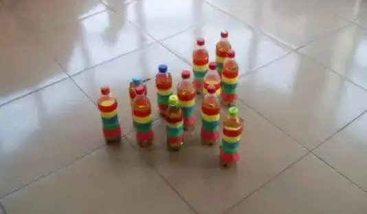 1.迷你保龄球:找几个空的饮料瓶(如果没有,可用纸杯代替),然后按保龄球的摆放方式在墙角摆好。按保龄球的规则计分(也可自创规则)。