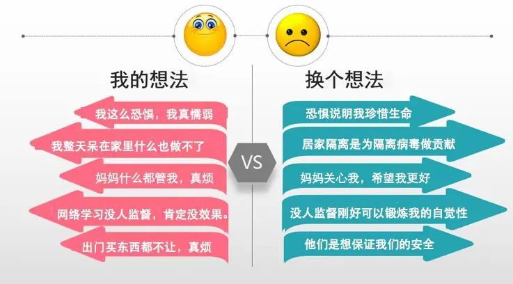 面对疫情再一次带来的学习生活的巨大变化。有的同学把居家网课学习看做查漏补缺的机会,从容淡定、有条不紊地学习,规划好自己每一天的学习生活,让自己的生活变得丰富多彩。而有的同学心情烦躁、无所适从、感觉到焦虑不安,那我们应该怎么应对这次疫情带来的变化,关爱自我心理成长呢?
