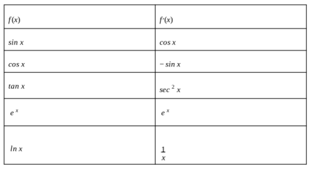 如果我们对函数 求导,我们会得到=(文末附带的表格里有其它一些常见函数的导数)。