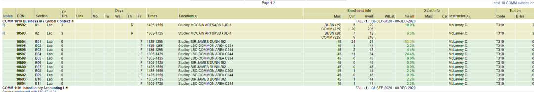 对时间和课程心里有数了,就需要开始排课表了。同学们可以搜索Academic Timetable, 选定学期后就可以看到该学期学校开设的所有课程,和具体到课号,上课时间,教师,报课率等详细信息。
