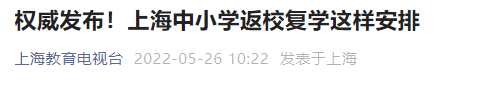 (一) 由于各方面情况的调整与变化,本网所提供的【上海中小学返校复学这样安排——上海教育电视台】仅供参考,并不意味赞同其观点或证实其内容的真实性,相关信息敬请以权威部门公布的信息为准。