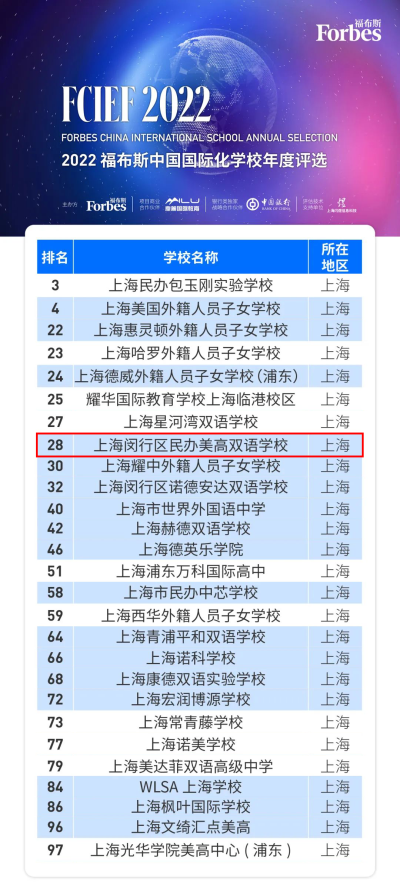 荣登全国TOP30榜单!上海美高双语学校强势上榜2022福布斯中国国际化学校百强榜!
