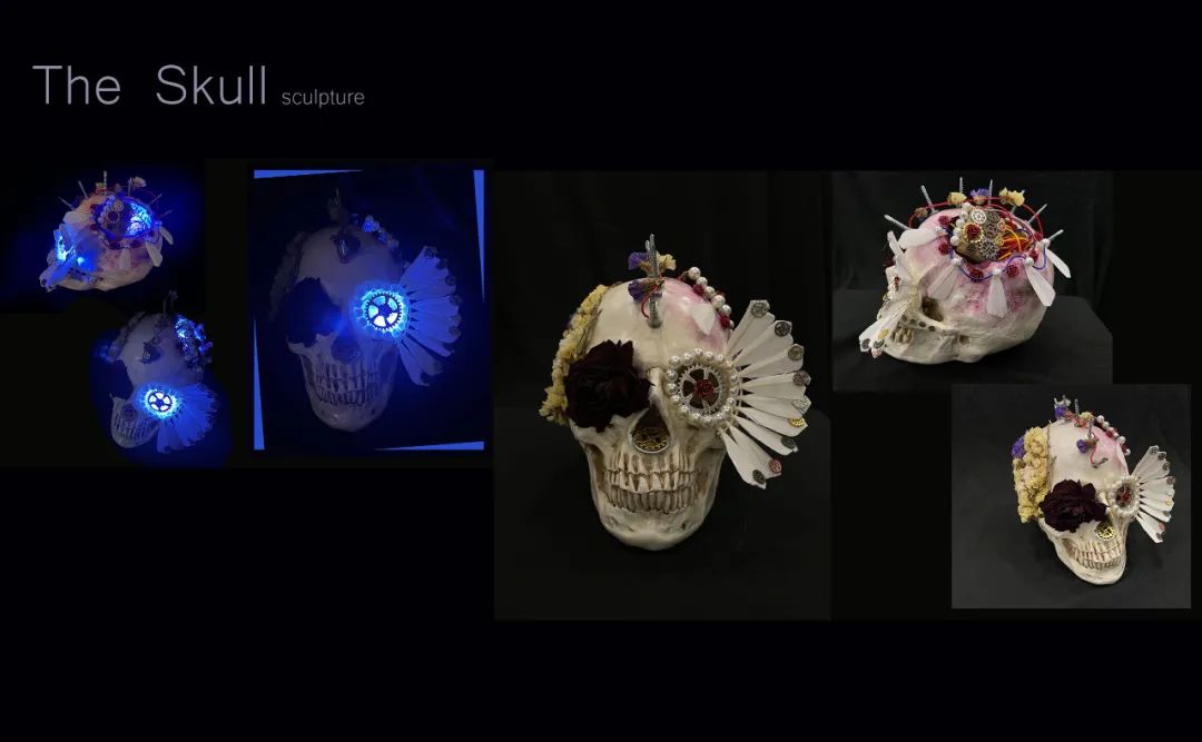作品集的另外一部分是一个比较“赛博朋克”的艺术装置。“我很喜欢这个装置,耗费了大概一个月的时间做出来,很多零件都是我在路上捡的,包括有很多像垃圾一样的东西,被我收集起来,最后用在了这个装置上。”