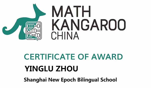 上海新纪元双语学校 :袋鼠数学竞赛,上海新纪元周颖露获得金奖