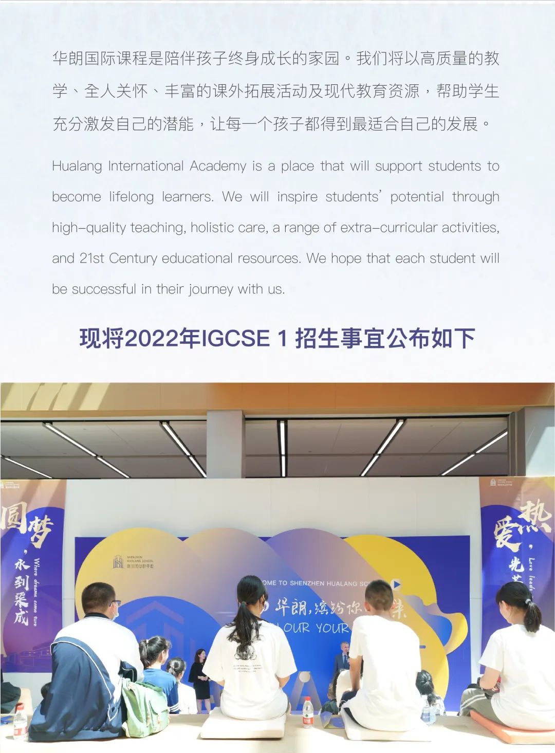 (一) 由于各方面情况的调整与变化,本网所提供的【2022年华朗国际课程IGCSE 1 招生公告 _ 深圳市华朗学校】仅供参考,并不意味赞同其观点或证实其内容的真实性,相关信息敬请以权威部门公布的信息为准。