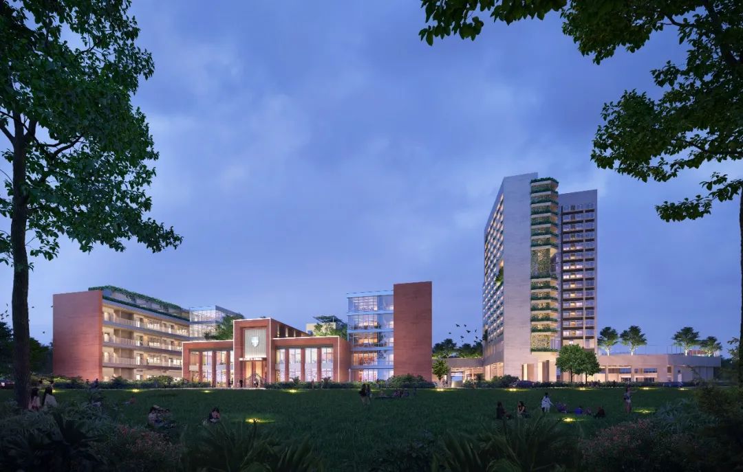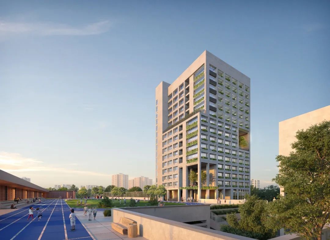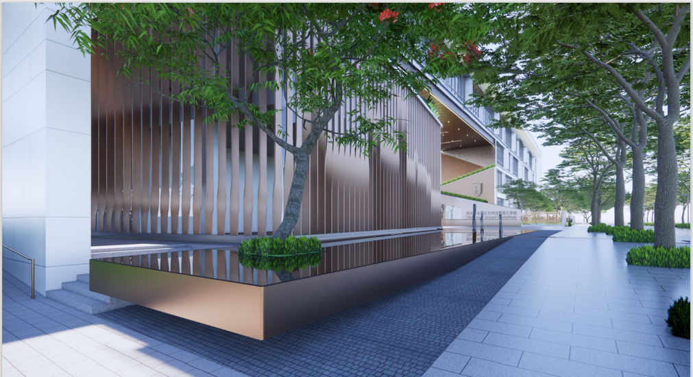 在整体建筑设计上,应用了当代脑科学的理念,采用低密度建筑、大绿植布局、多处留空的庭院式处理,与英国本部交相辉映,营造出一所“静心校园”的效果,为学生的生活和学习营造积极的环境。