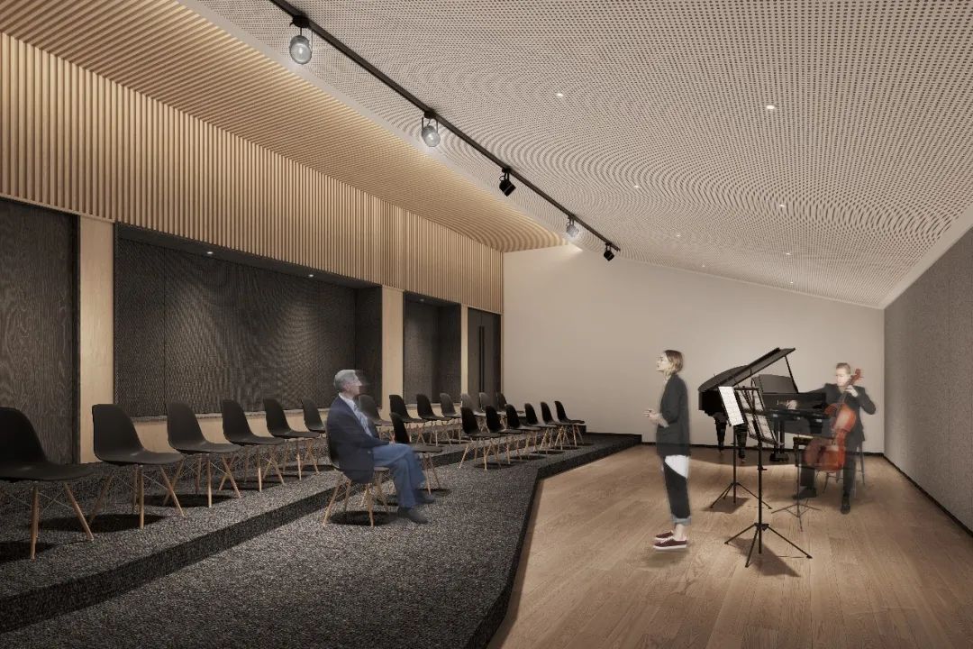 除了学术环境的创新与传承,在艺术设施方面,深圳国王学校也与英国本部一脉相承,延续“A Performing School一所敢于展现自我的学校”的教育理念。前海校区将建有多个音乐设施,包括音乐厅、录音室、管弦乐教室、钢琴室等。