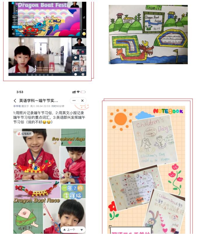 基于作业设计以教材为基础,以核心素养为导向的指导意见,京版教材中出现在各个年级中的节日主题的教学活动成了鲜明的表现主题。以儿童节,母亲节,父亲节,端午节为主题的特色作业,由于其主题鲜明,知识辐射面广,又与中国传统文化相关联,并且是孩子们喜闻乐见,贴近生活的大好主题,于是特色作业也就非常精彩了。