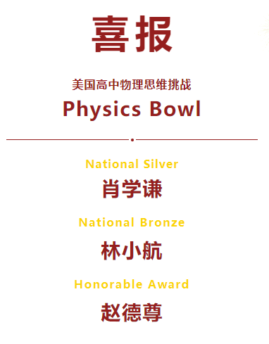 “物理碗”又叫美国高中物理思维挑战(Physics Bowl),该项目是美国具有影响力的高中物理竞赛,每年有全球 11 个国家超过 500 所著名高中参加。在项目中获得高分者的学生能得到许多美国名校的青睐。