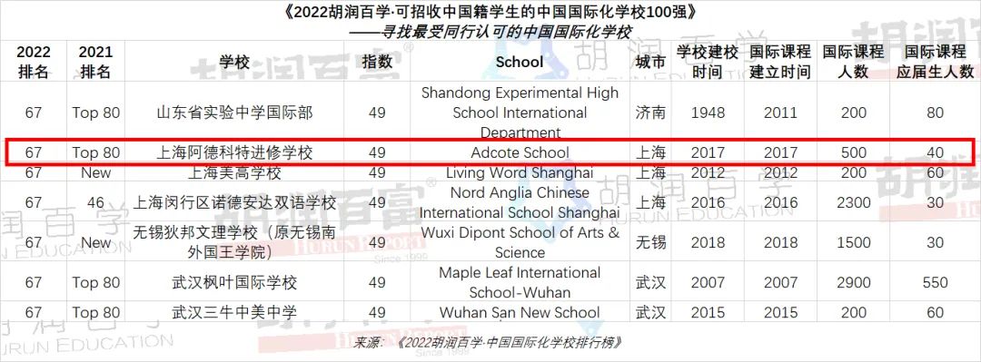 上海阿德科特学校连续三年入榜《胡润百学·中国国际化学校百强榜》