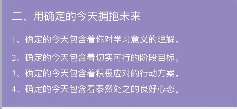 疫情引发了太多的不安和焦虑,在诸多的不确定性中我们难免有疑虑踌躇。但我们的可为之处在于可以用确定的今天拥抱未来。确定的今天包含着你对学习意义的理解,包含着切实可行的阶段目标,包含着积极应对的行动方案,也包含着泰然处之的良好心态。