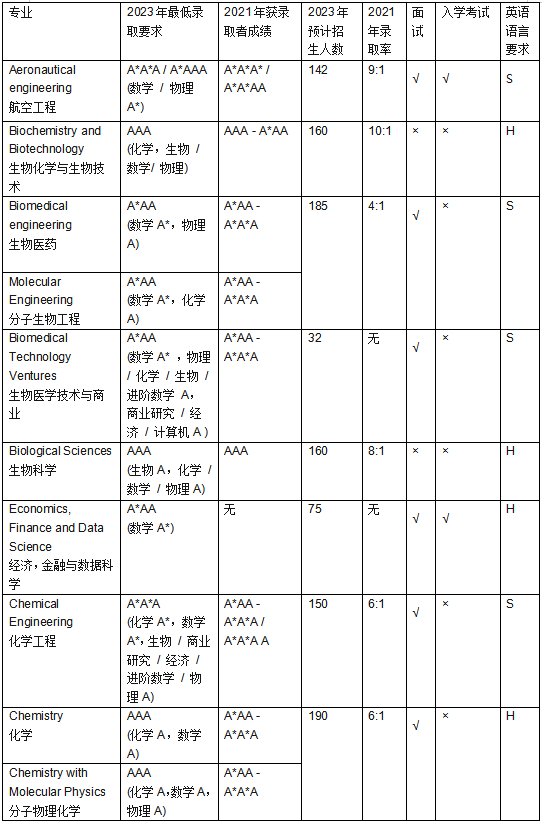 帝国理工2023年本科申请各专业具体要求:带着以上解读,下表所含信息就一目了然了。