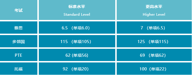 帝国理工对英语语言的要求根据各专业分为两类,标准水平(Standard Level)和更高水平(Higher Level)。