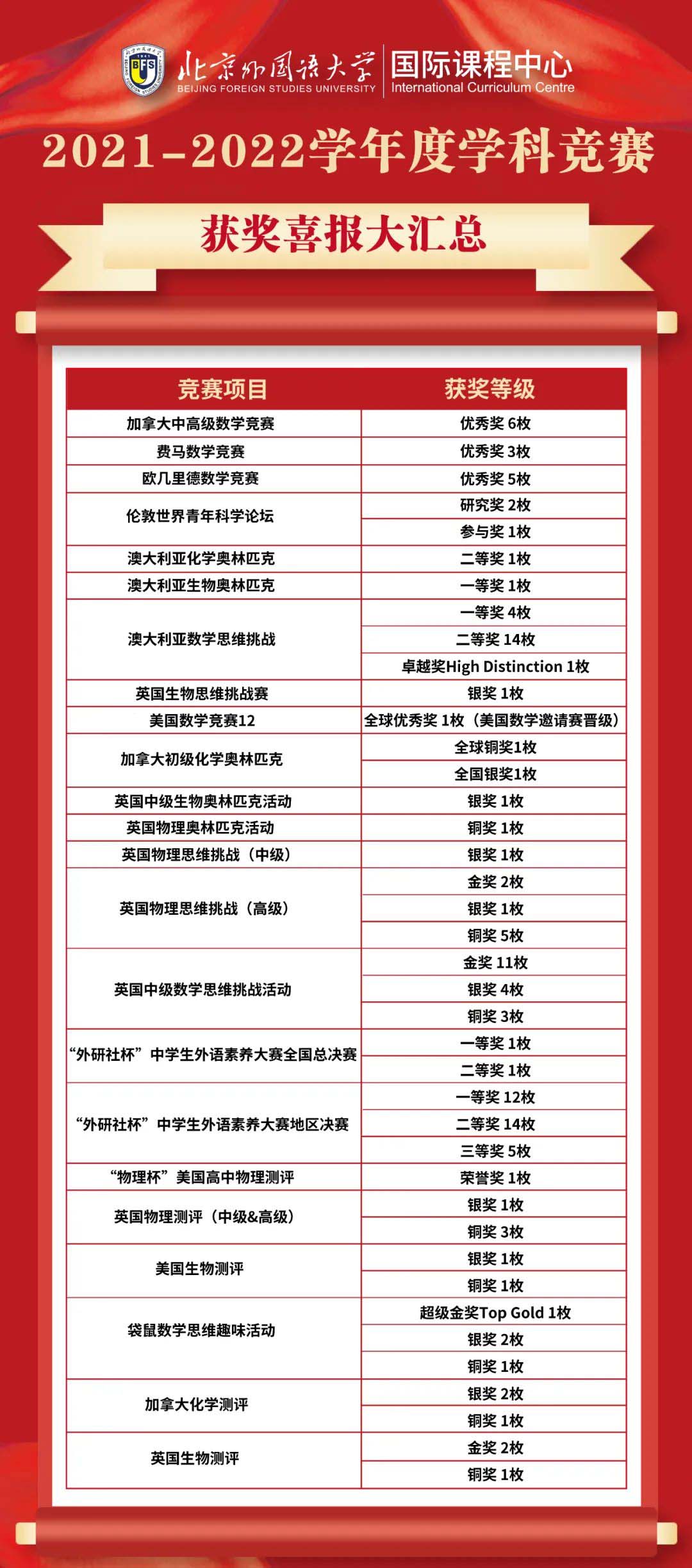 2021 _ 2022学年度北外ICC学科竞赛获奖喜报汇总 _ 北京外国语大学国际课程中心