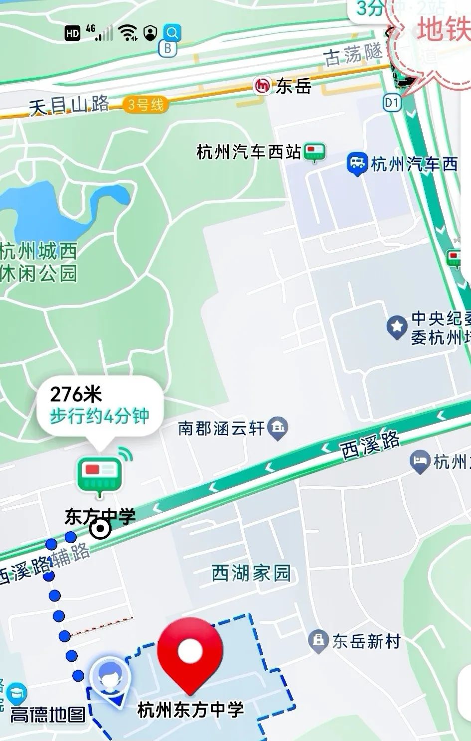 (2)学校附近的公交和地铁非常方便,校门口停车位紧张,提倡家长和学生绿色出行,公交东方中学站下,步行200米到达;地铁3号线东岳站D1口下,步行800米到达。