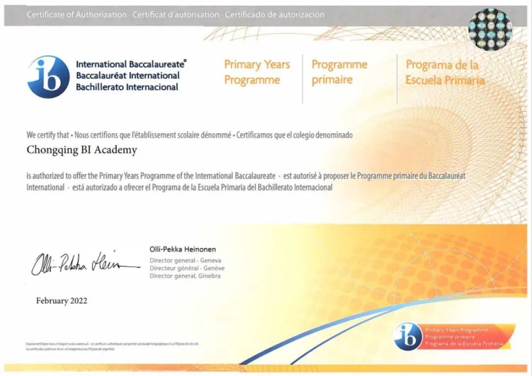 中西合璧,奠基学历。2月,博物馆式小学收到了来自国际文凭组织的确认函,正式获得IBPYP授权,成为重庆市第一所IB PYP世界学校。