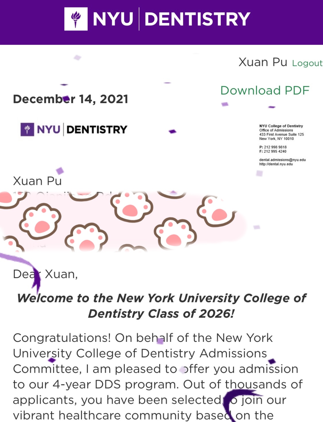 Hello,大家好! 我是诺科2018级的毕业生濮璇Tess。我本科毕业于凯斯西储大学生物系并辅修化学,以牙医入学考试全美前2%的成绩入学纽约大学牙医学博士项目(Doctor of Dental Surgery)。