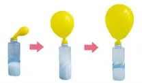 5.气球里的小苏打倒进瓶子里。奇迹发生了:瓶子把气球吹起来了。