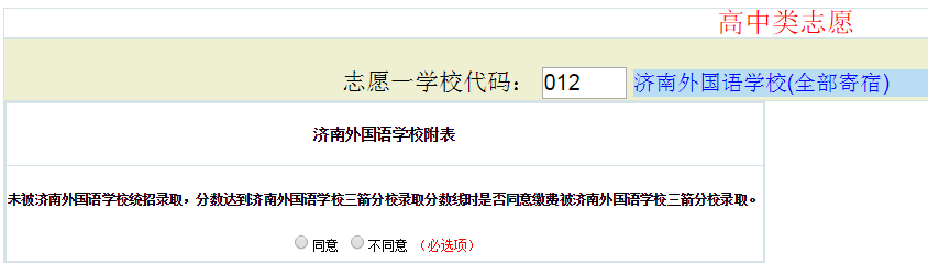 第二次填报志愿,实行平行志愿。考生填报济南外国语学校,会弹出一个对话框,若考生同意缴费上学,相当于考生同意报考济南外国语学校的同时也同意报考三箭分校,考生若达到济南外国语学校录取分数线,则被济南外国语学校统招录取,若没有达到济南外国语学校分数线而达到三箭分校分数线则会直接被三箭分校录取,三箭分校未被录取,才会检索其他志愿学校;若考生不同意缴费上学,则相当于只同意报考济南外国语学校,不同意报考三箭分校。