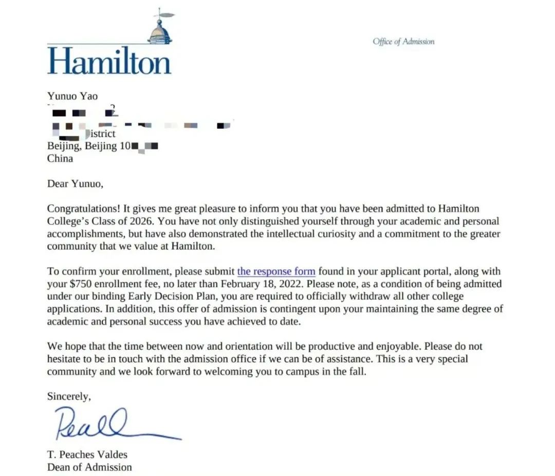 那种从遥不可及到触手可及的“不可思议”真是让人喜极而泣! 随着offer季接近尾声,姚雨诺同时也拿到了英国伦敦大学学院教育心理学的offer(被誉为G5超级精英大学之一),但经过自己的考虑,她还是更喜欢汉密尔顿的授课形式,从而放弃了伦敦大学学院。