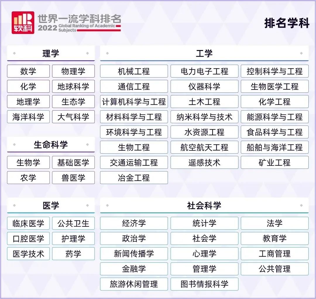 高等教育评价专业机构——软科,今日正式发布2022“软科世界一流学科排名”(ShanghaiRanking's Global Ranking of Academic Subjects)。
