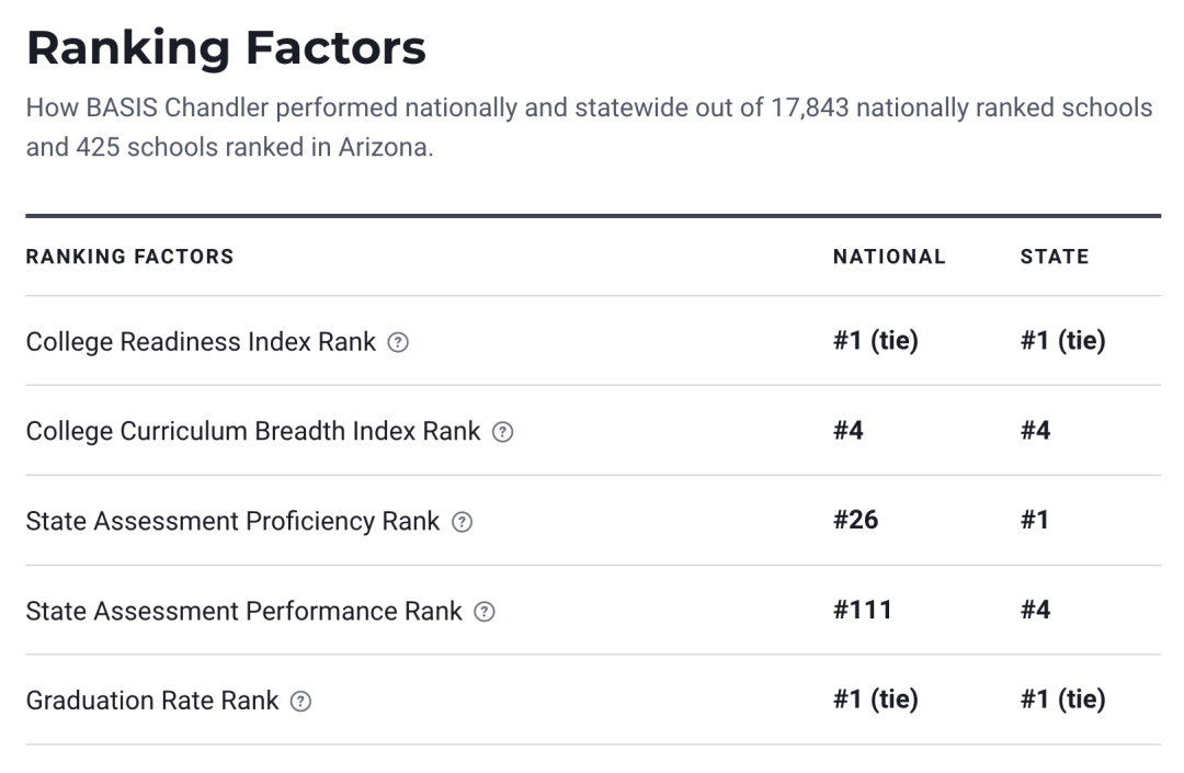 △BASIS Chandler 在美国和亚利桑那州的排名