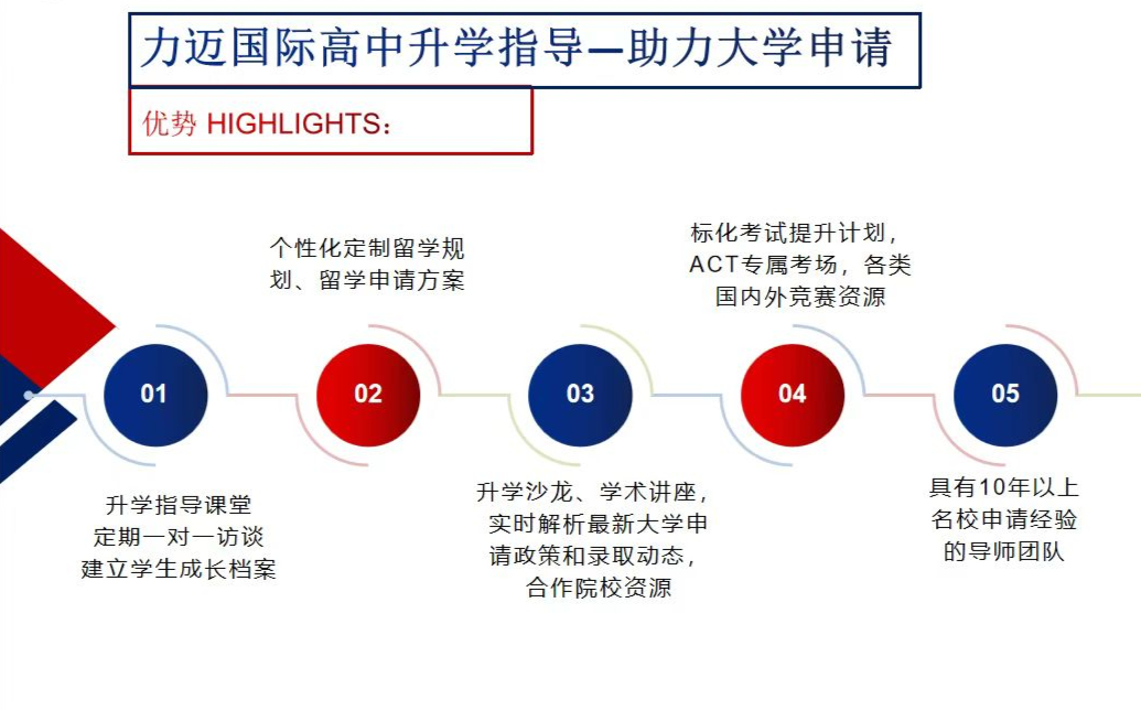 与国内高考不同,海外留学需要提前花费大量的时间和精力进行规划才能为将来申请大学打下坚实的基础,力迈学校开设有多样化的国际课程,把学生输送到不同的国家,需要考虑不同国家的教育体制和特点,对学生进行针对性的指导和规划。
