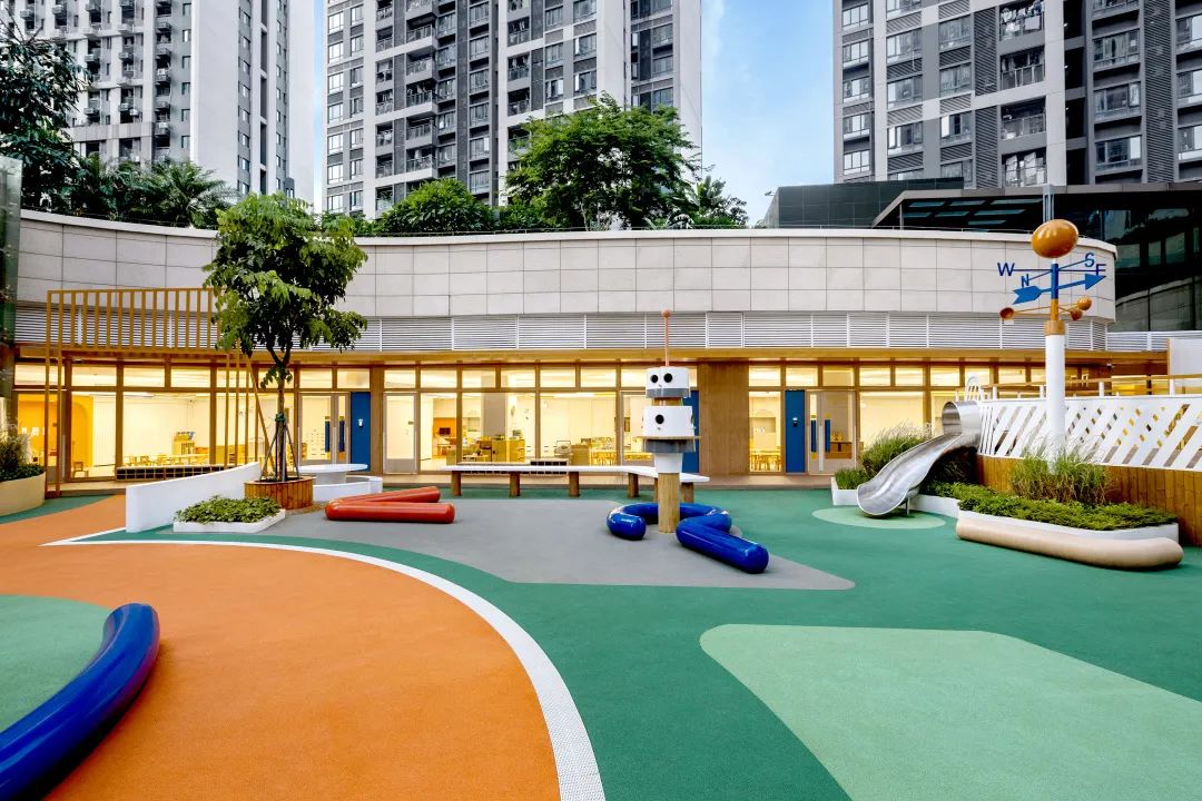 IBOBI SUPER SCHOOL坐拥城市中心绝无仅有的超大户外绿地,教室与自然连通形成流动开放的场域,建构起支持自由探索的多元场景。