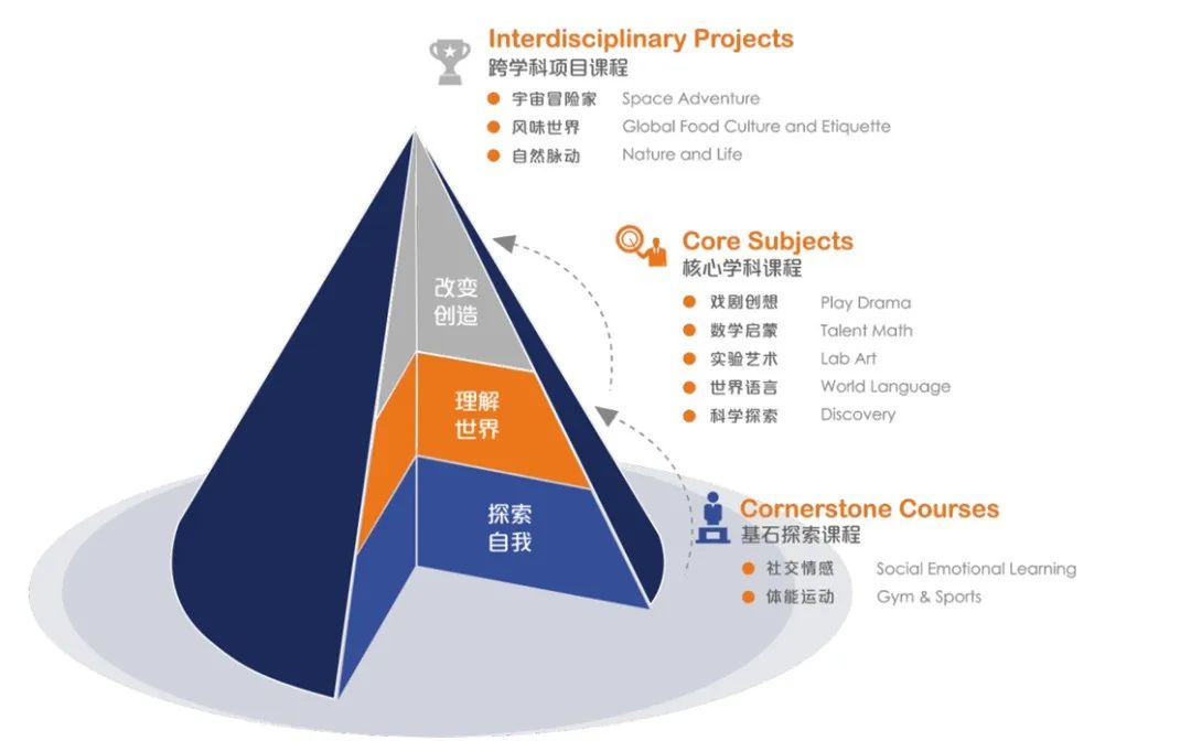 IBOBI SUPER SCHOOL的课程体系涵盖了:基石探索课程、核心学科课程、跨学科项目课程。