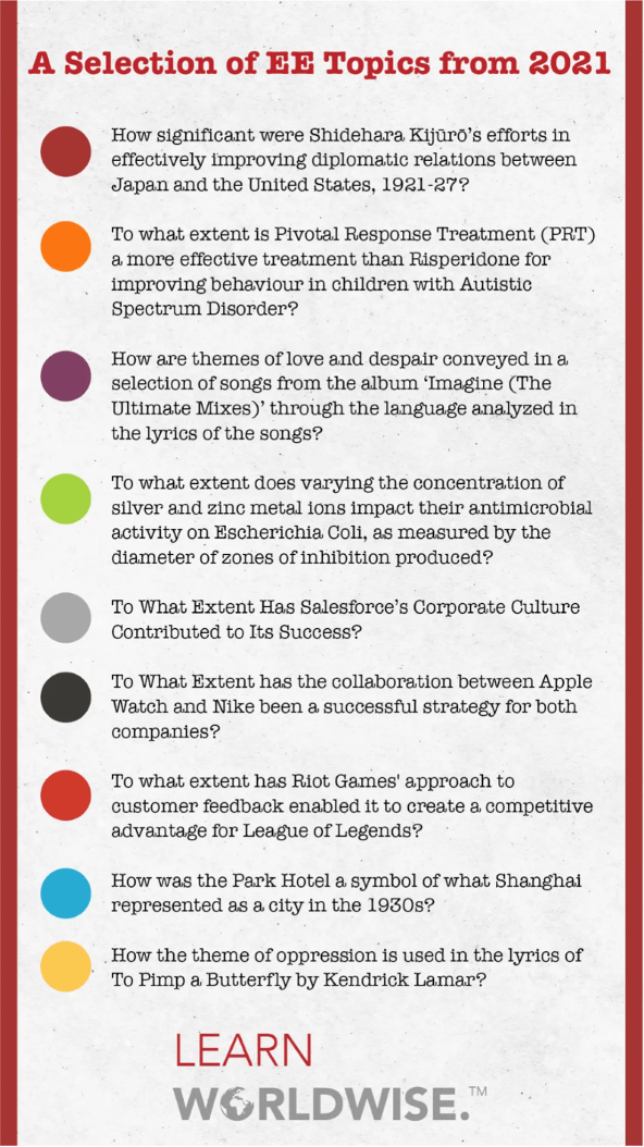 今年毕业生的拓展论文题目包括: