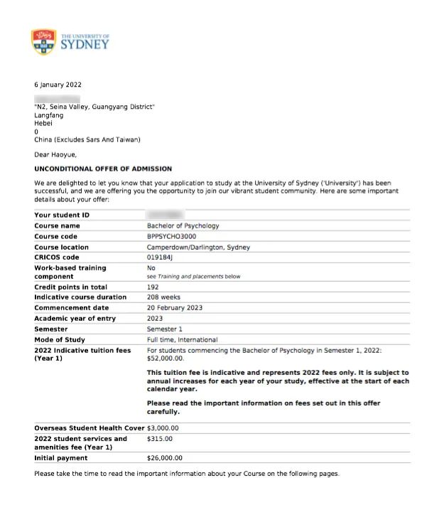回到现在,我是在毕业典礼后的一个月内收到了澳大利亚学校的所有Offer,并在那时,进行了额外的申请。而申请的顺利进行也少不了学校的帮助。在21年年初,我的旧护照过期了,我的申请不能再继续进行。因为户口不在山东省且疫情限制出行的缘故,我没办法回到户籍所在地补办护照。在这样的情形下,幸亏得到了学校老师的帮助,为我提供了大量的证明材料,让我成功的补办护照。