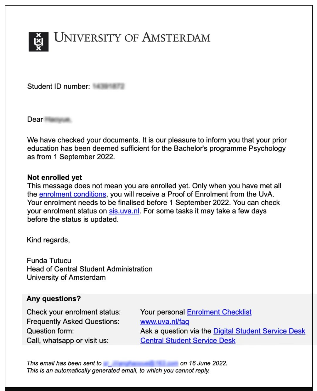 阿姆斯特丹大学(荷兰第一、全球top55) 心理学