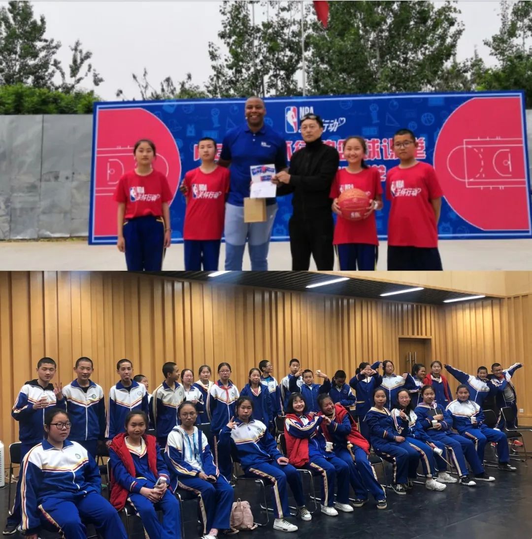 上:窦予浩(右二)在蒲公英中学参加NBA关怀行动;下:与学校管乐队在天桥剧院演出