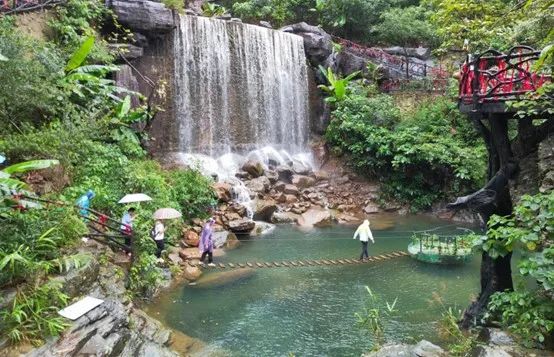 笔架山溯溪探险处在高山密林之中,大家与自然零距离接触,呼吸最新鲜的空气。各种各样的娱乐活动,过浮桥、坐滑索、爬软梯、攀铁索、走网桥、穿密林,无处不让老师们体会到刺激与乐趣,欣赏了雨中笔架山的柔情与奔放、激情与狂野。