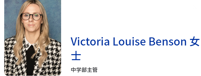 Victoria Louise Benson老师毕业于利物浦大学的数学和管理专业。她其后获得教师资格,并通过进阶教师资格的严谨过程。在2011年,Benson老师决定加入国际教育的领域,曾在三所分别位处中国和意大利的大型国际学校工作。