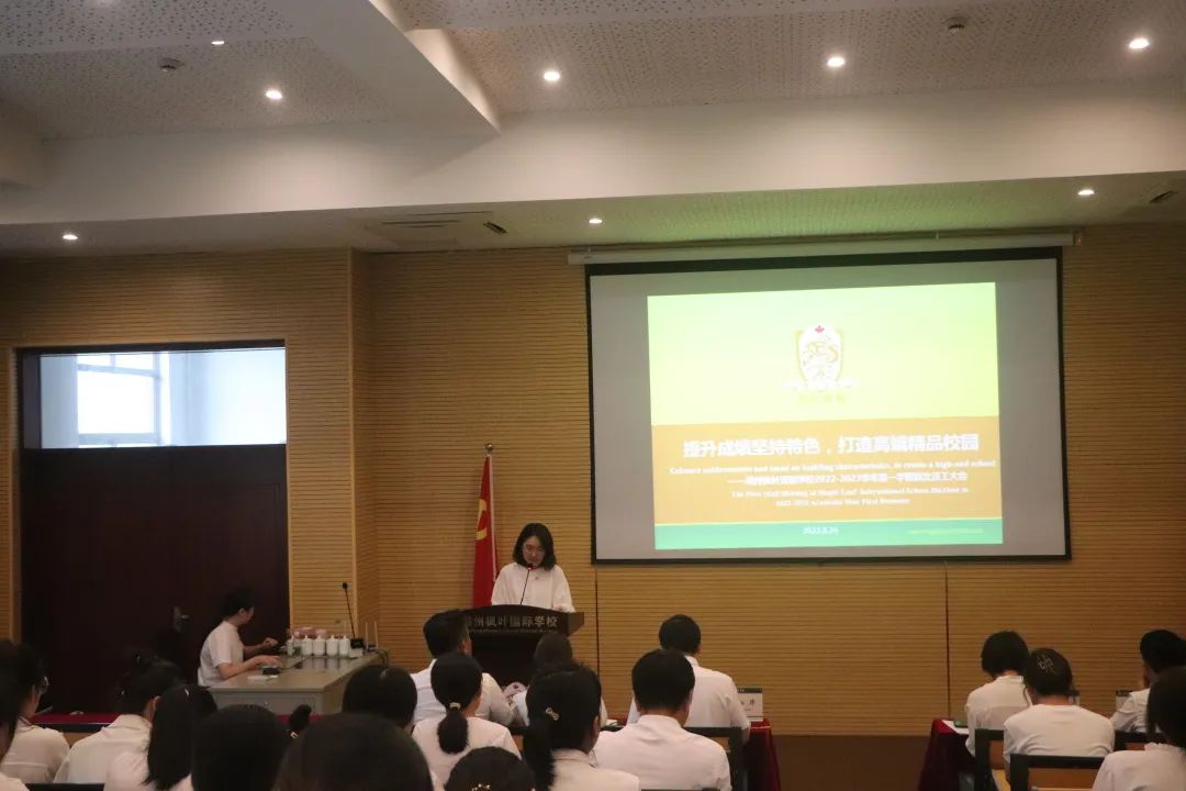 8月24日下午,湖州枫叶双语学校2022-2023学年首次员工大会在阶梯教室举行,本次会议的主题是“提升成绩坚持特色,打造高端精品校园”。