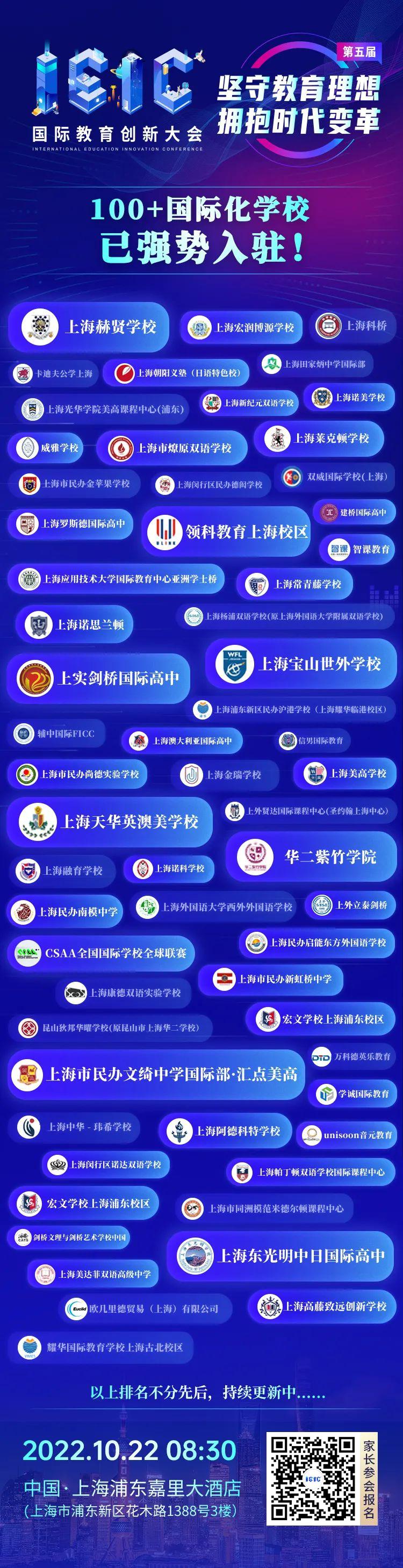 (一) 由于各方面情况的调整与变化,本网所提供的【100+热门国际化学校抢先入驻2022年IEIC大会:世外/平和/协和/领科/美高/WLSA…】仅供参考,并不意味赞同其观点或证实其内容的真实性,相关信息敬请以权威部门公布的信息为准。