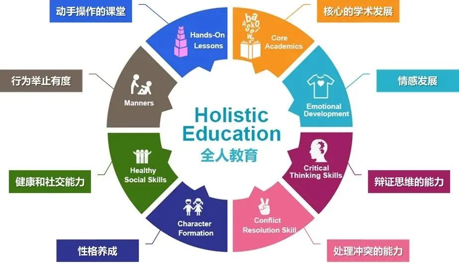 德闳学校所做的一切都以学生的利益为出发点,因此学校所提倡的全人教育,是从身体、情感、知性和社交等不同角度,发展全面的孩子,包括核心学术发展、情感发展、辩证思维、处理冲突的能力、性格养成、健康与社交能力、行为举止、动手操作能力等。