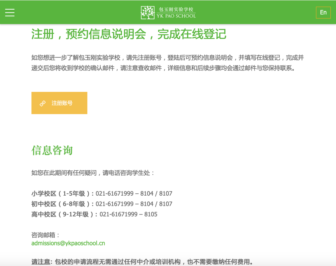 有意向申请包玉刚的家长们,可以通过官网“在线登记”提交在线登记表。