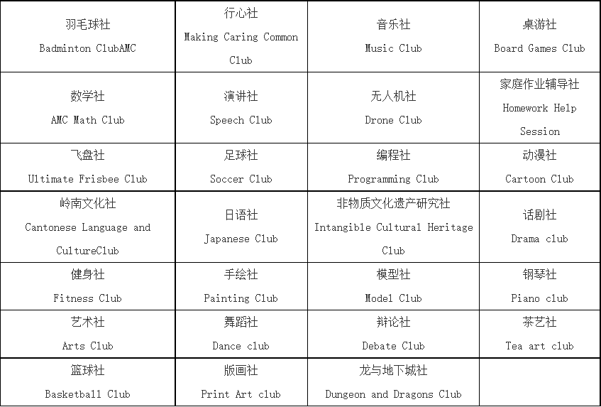 同时我们看看部分深圳博纳国际学校开设的社团:
