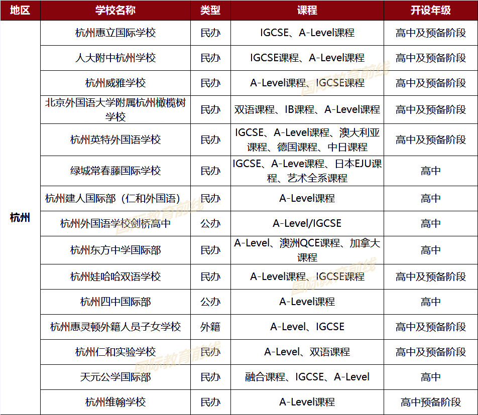 (一) 由于各方面情况的调整与变化,本网所提供的【杭州有哪些A_level国际化学校?】仅供参考,并不意味赞同其观点或证实其内容的真实性,相关信息敬请以权威部门公布的信息为准。