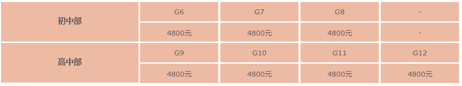 注:学费包含拓展活动,一对一留学规划,升学指导;但不含国际考试与竞赛、外出考察实习及出国夏令营等代收代缴费用