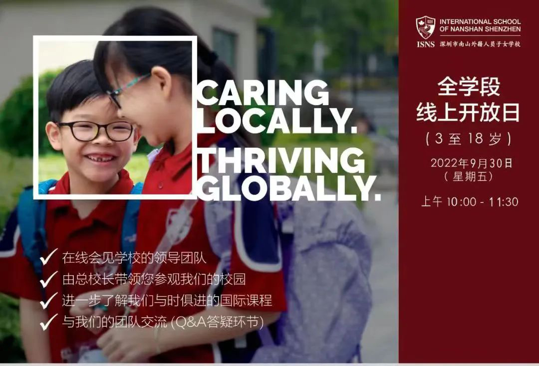 9月30日(周五)10:00-11:30,深圳市南山外籍人员子女学校开展校园开放日了,想要了解国际教育和先进的教育设施信息,就来准备吧!