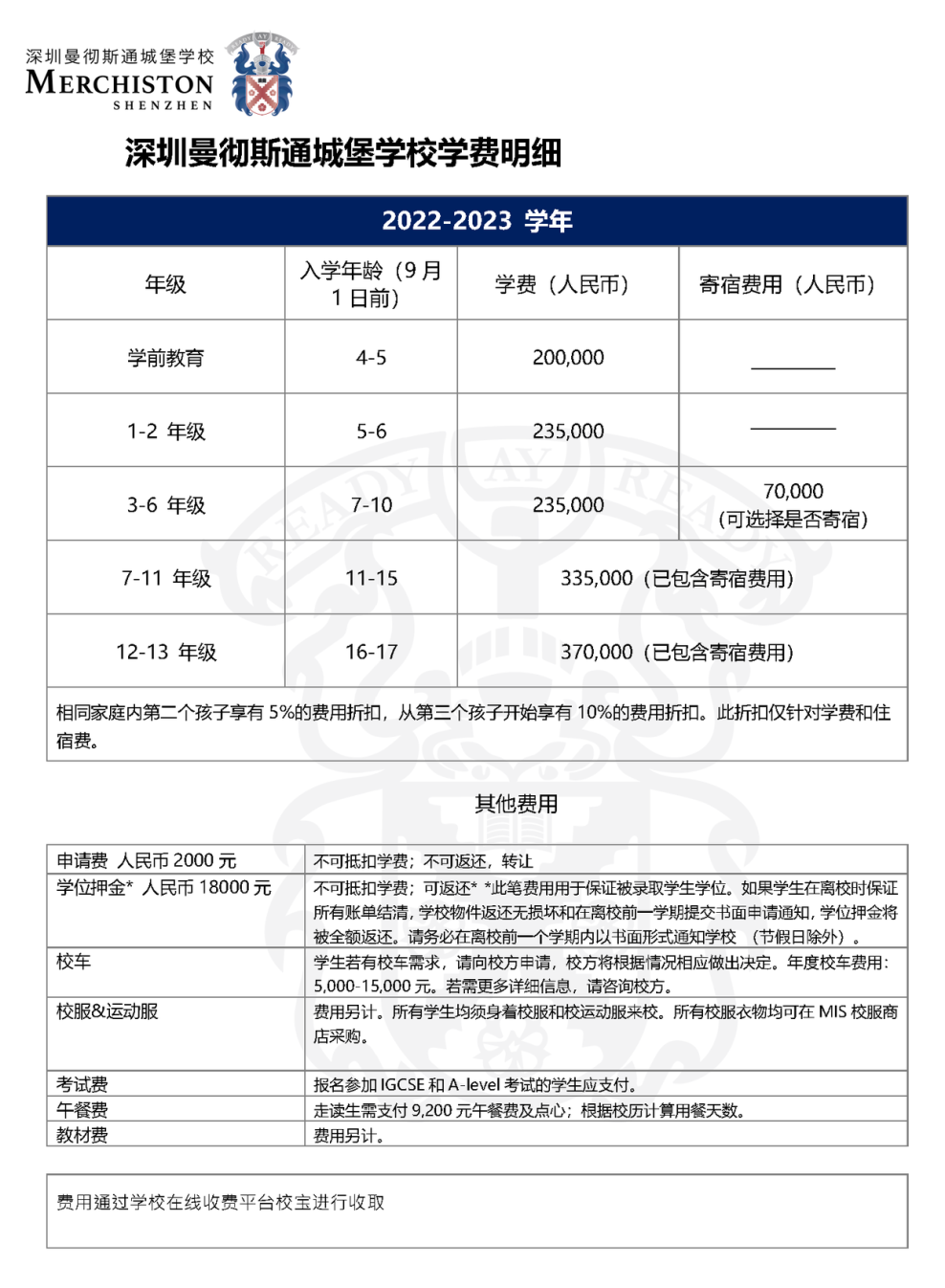 深圳曼彻斯通城堡学校是深圳第一所提供纯正英式教育和寄宿管理体系的国际学校,也是拥有近200年历史的英国知名私立学校曼彻斯通城堡学校(Merchiston Castle School ,位于苏格兰首府爱丁堡)的授权认证的海外分校。