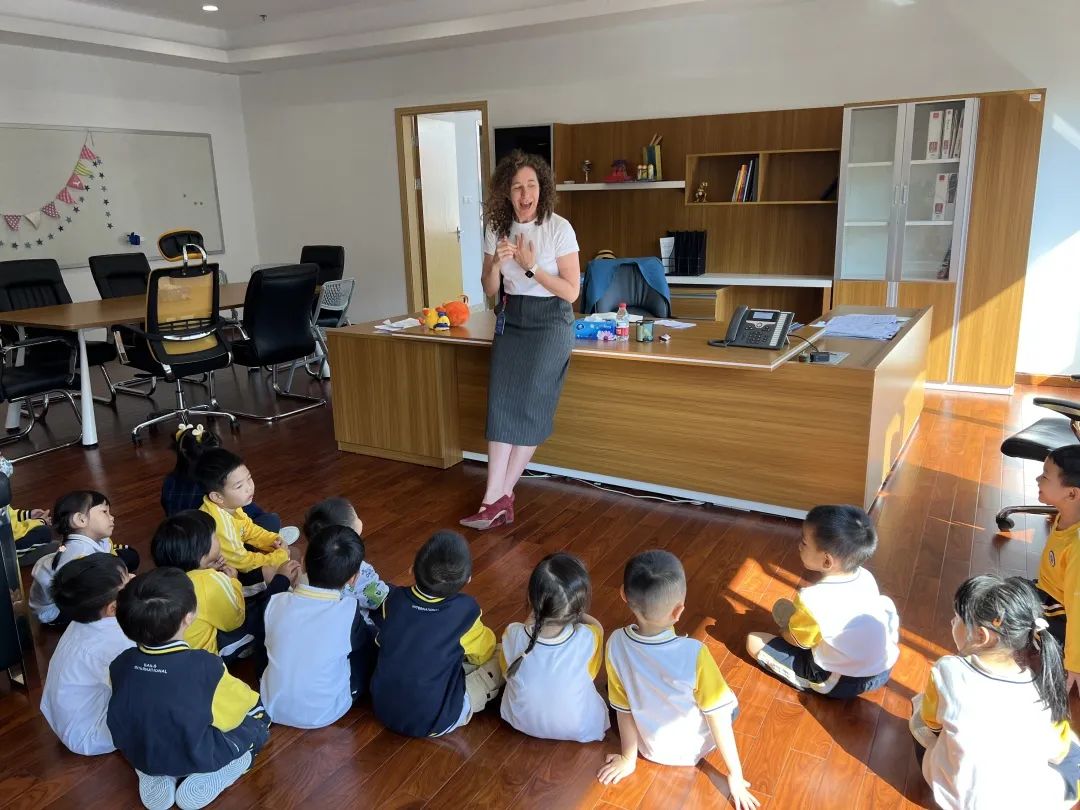 活泼可爱的幼儿部中班学生正在学习“社群”的概念。在了解了自己的亲人后,孩子们把目光锁定在第二个“家”——温暖的广贝。老师们与孩子们制定了详细的校园参观计划,第一站便是校长Dr. Smeltzer的办公室。