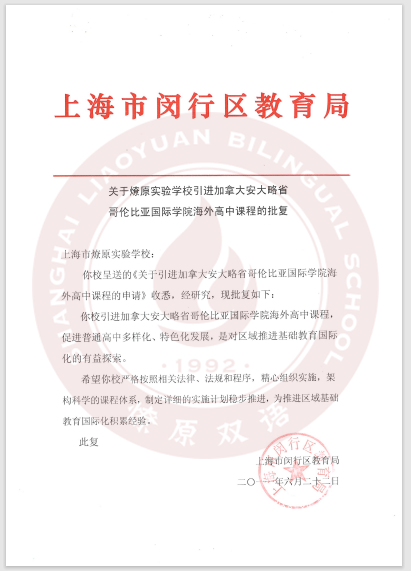 开设11年的燎原高中国际课程班拥有OSSD项目的相关批复和授权,是官方认证的课程项目。