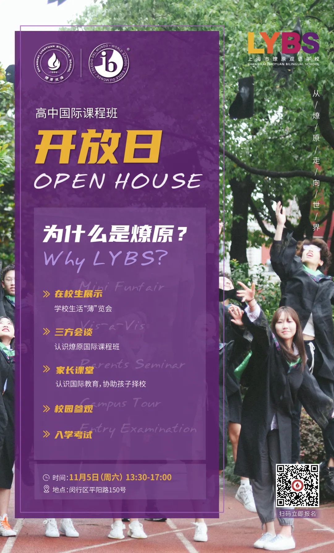 11月5日国际高中开放日,欢迎意向家庭预约报名
