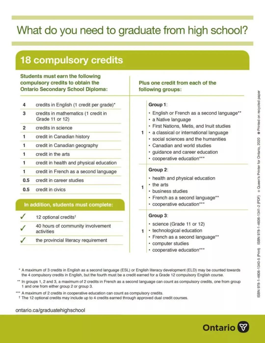 加拿大安大略省教育厅官网对OSSD课程的要求