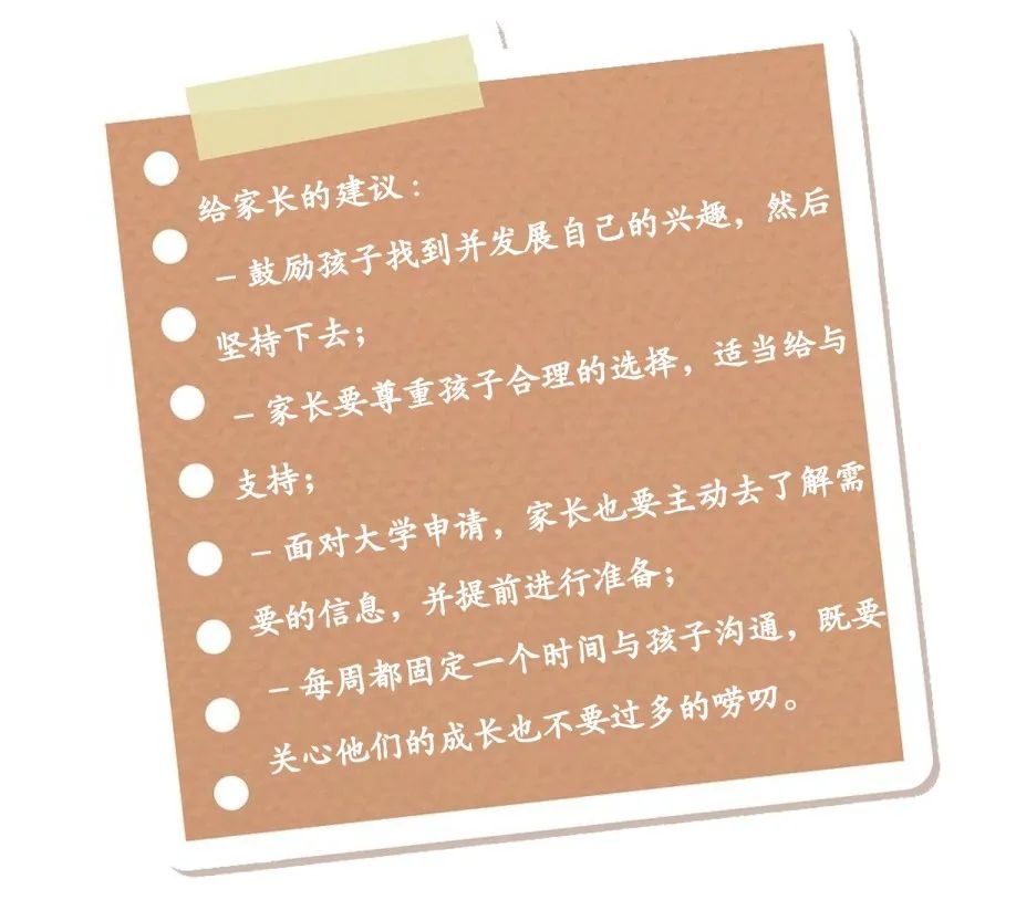 为了让学生更好地了解自己,老师们首先会借助专业测评软件,通过回答各类问题对他们的思维模式和兴趣进行评估,再通过该软件的专业的数据分析帮助他们找到适合的职业发展方向。此外,老师们还创建了大学信息共享平台,囊括了全球的各大知名院校介绍,所在城市的介绍,以及校内各个专业的入学要求等,学生和家长都可以随时登录查找需要的信息。这些线上系统的建立和使用,极大提高了学生择校的效率和准确性。