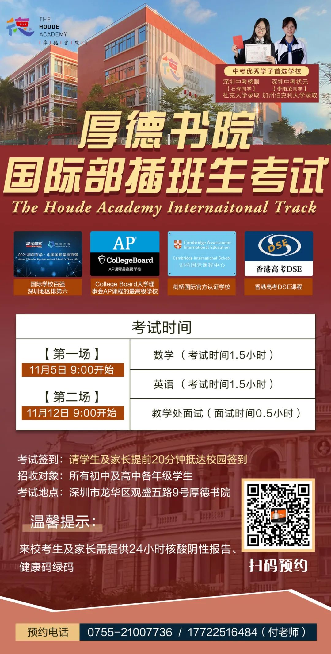 (一) 由于各方面情况的调整与变化,本网所提供的【深圳市厚德书院国际部开放日报名,探索国际化教育的奥秘! 】仅供参考,并不意味赞同其观点或证实其内容的真实性,相关信息敬请以权威部门公布的信息为准。